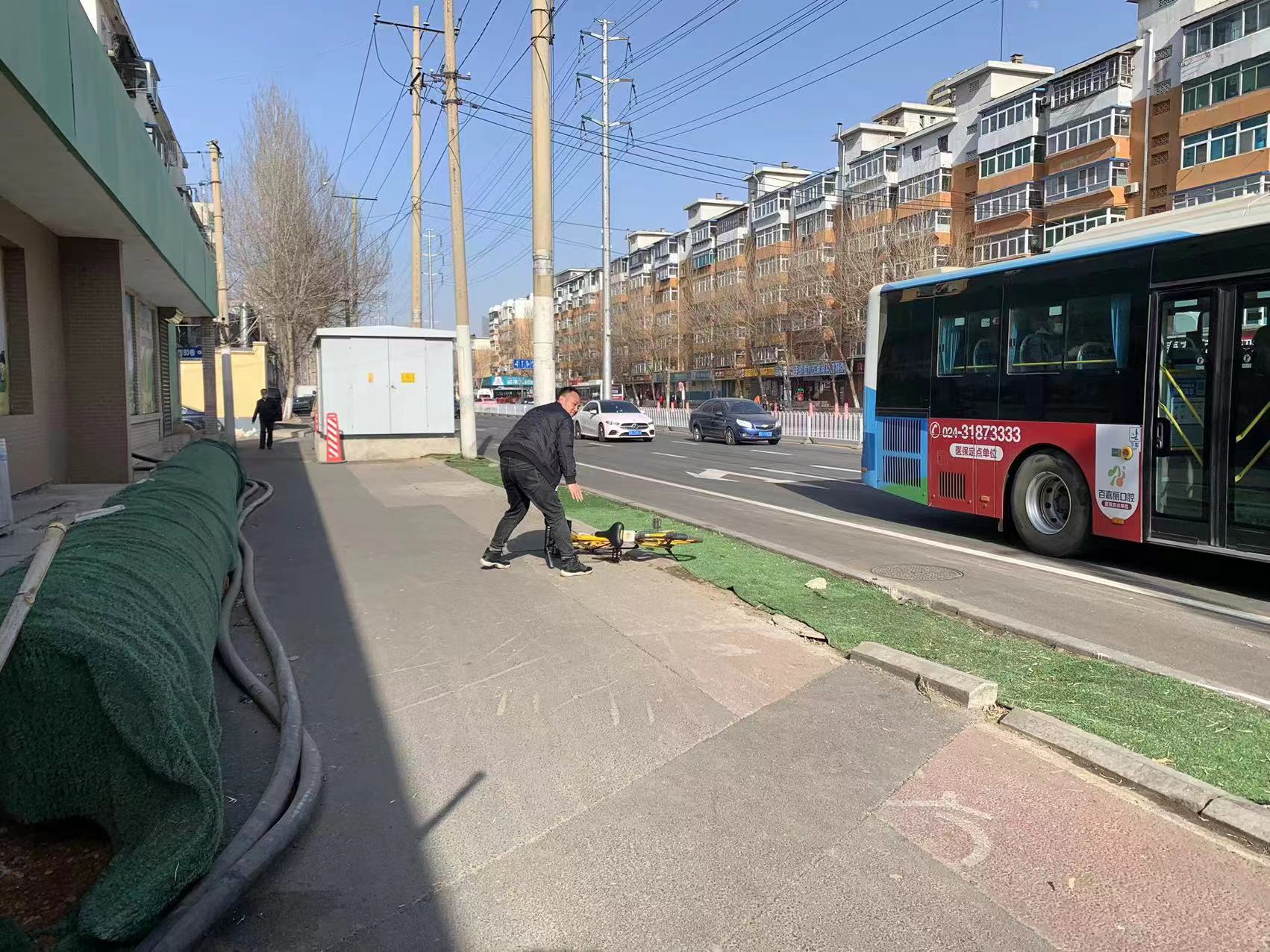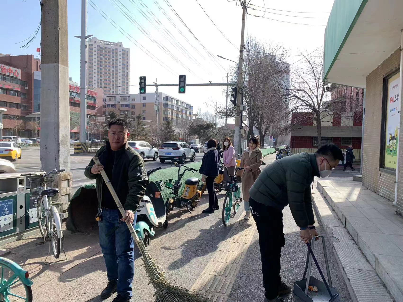 清掃和平南大街路面衛(wèi)生,規(guī)范共享單車擺放