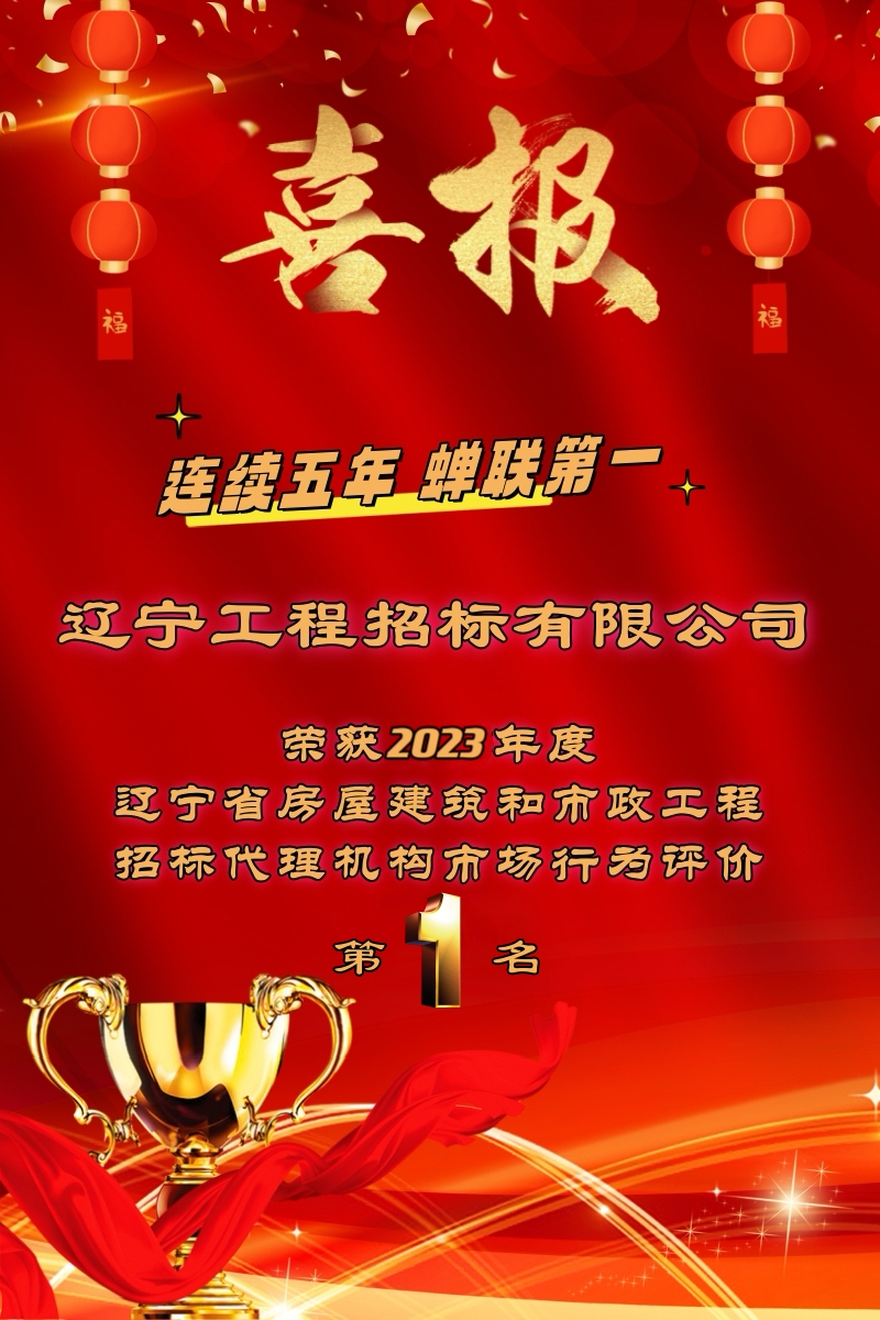 公司榮獲2023年度遼寧省房屋建筑和市政工程招標代理機構(gòu)市場行為評價第一名