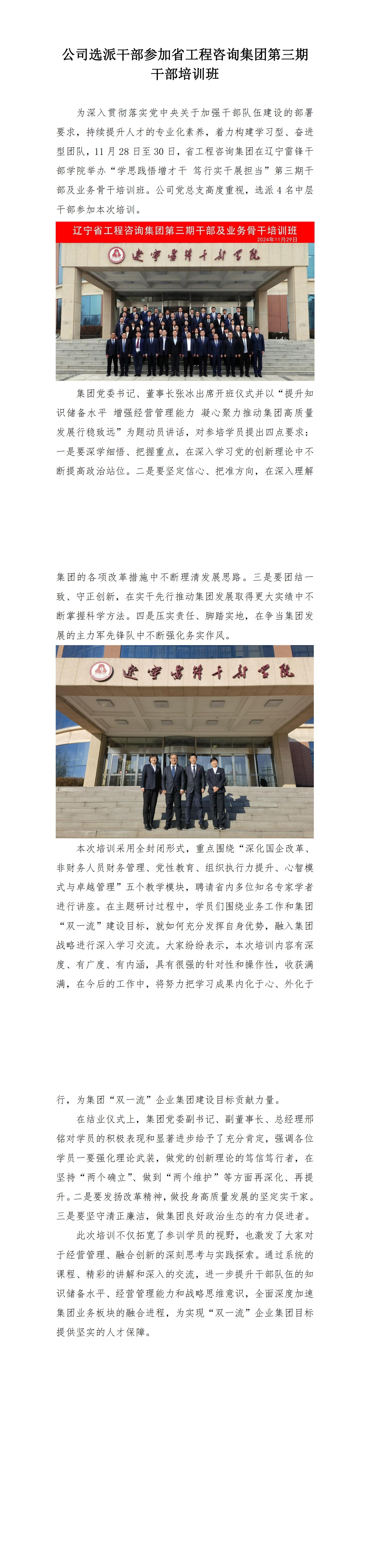 公司選派干部參加省工程咨詢集團(tuán)第三期干部培訓(xùn)班